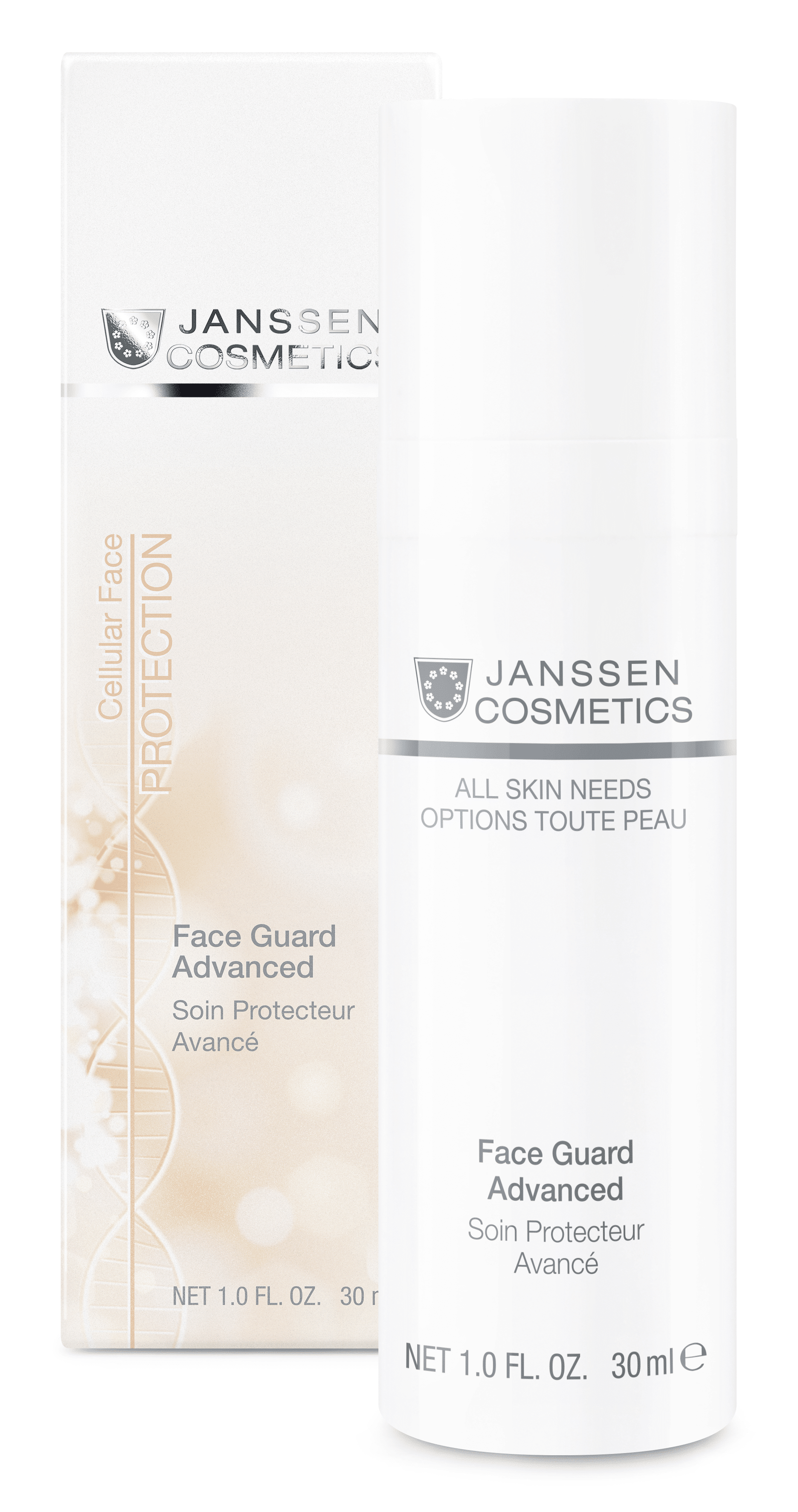 FACE GUARD ADVANCED er létt alhliða formúla sem gefur húðinni góðann raka ásamt photostable UVA+UVB vörn og einstaka frumuvernd með virka efninu Ectoin®, sem hefur verið sannað að gefa húðinni skilvirka vörn gegn umhverfisáhrifum eins og þurrki, hita, kulda og útfjólubláum geislum að auki sjá líftæknilega fengin ensím um að hlutleysa sindurefni, og veita húðinni aukinn varnarskjöld ásamt hitavörn gegn innrauðum geislum (IR)